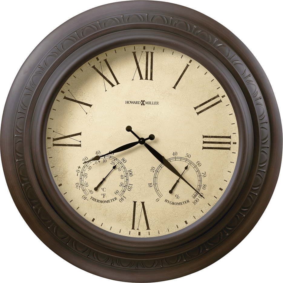 This 28" gallery clock has a brushed, antique copper finish with embossed decor. Designed for indoor or outdoor use, this metal wall clock offers a thermometer and a hygrometer, which indicate temperature and relative humidityRead More