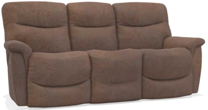 The James Power Reclining Sofa with Headrest with inviting bucket style seats and chaise leg rests that cradle you in support, while stitched pillow back styling and pillow top arms pamper you in softness.