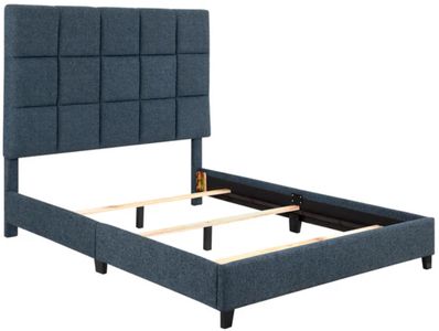 The Upholstered Squares Panel Bed in Navy features a chic, modern design with a stylish square-patterned headboard. Perfect for any bedroom, this bed adds a touch of elegance with its deep navy upholstery. Assembly is required for this sophisticated and versatile piece.Read More