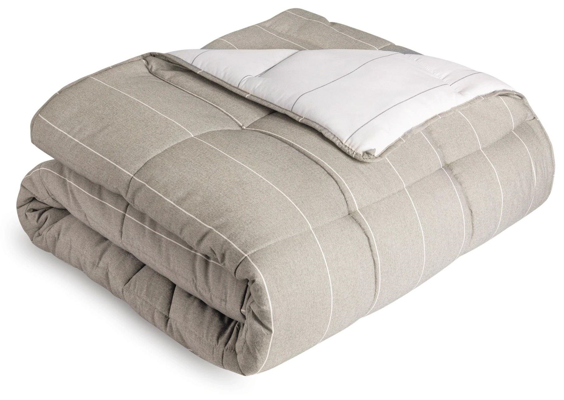 Stylish chambray-inspired pin-striped cover eliminates need for duvet cover