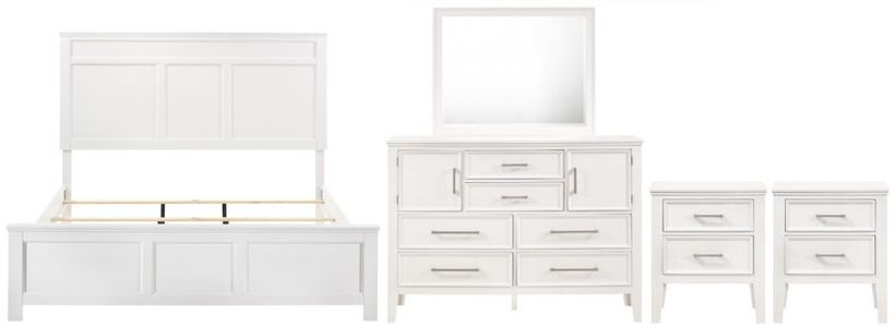 The Andover collection in white brings a touch of timeless elegance to your bedroom with its stunning blend of modern design and classic craftsmanship. This complete suite includes a panel bed, dresser, mirror, nightstand, and chest, all expertly crafted from solid rubberwood, manufactured woods, and wood veneers to ensure long-lasting durability and beauty.Read More
