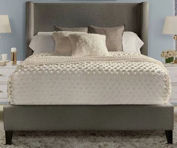 Tailored to perfection, the stately Angel bed creates a signature design aesthetic. Its tall, slightly winged headboard creates the perfect backdrop for reading or watching a favorite show, while its classic silhouette enhances the beauty of any bedroom. Upholstered in a soft, textural bouclé fabric.Read More