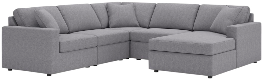 Includes 5 modular pieces: left-arm facing corner chair, 2 armless chairs, wedge and right-arm facing corner chaise